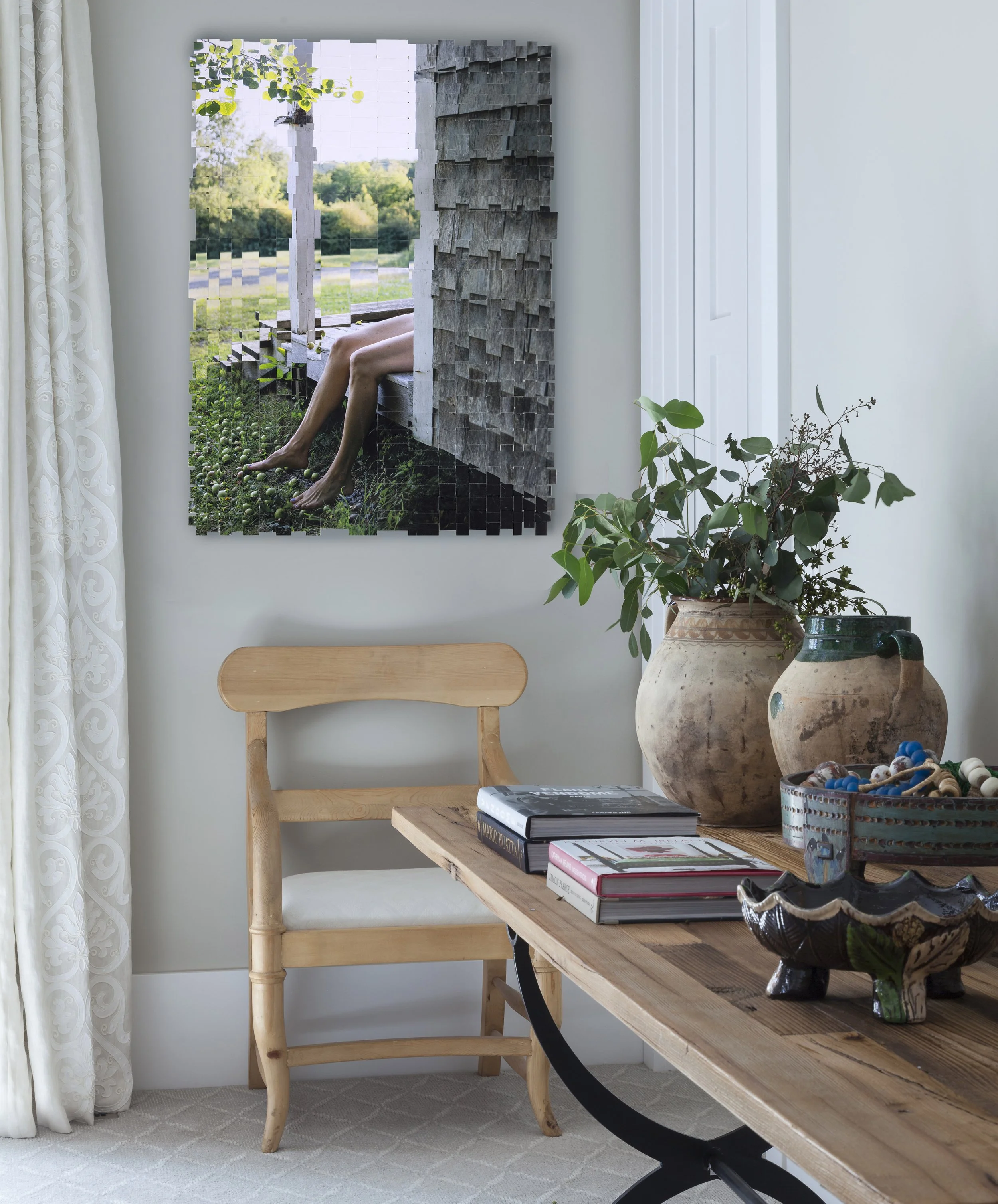 Playing with the theme of imperfection, this series reflects on the elusive nature of memories, the subtle divide between what is real and our perceptions. The disjointed and offset nature of these entwined images represent this divide. Remembering the times when my mother and I used to knit and needlepoint together, I was drawn to the idea of weaving a photograph in homage. These images allude to memories of my past, however imperfect or blurred…the beauty lives in the nostalgia.